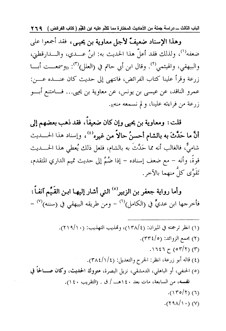 وهذا الإسناد ضعيفٌ لأجل معاوية بن يحيى، فقد أجمعوا على ضعفه1، ولذلك فقد أعلَّ هذا الحديث به: ابنُ عدي، والدارقطني، والبيهقي، والهيثمي2. وقال ابن أبي حاتم في (العلل) 3: "وسمعت أبا زرعة وقرأ علينا كتاب الفرائض، فانتهى إلى حديث كان عنده عن: عمرو الناقد، عن عيسى بن يونس، عن معاوية بن يحيى ... فامتنع أبو زرعة من فراءته علينا، ولم نسمعه منه".