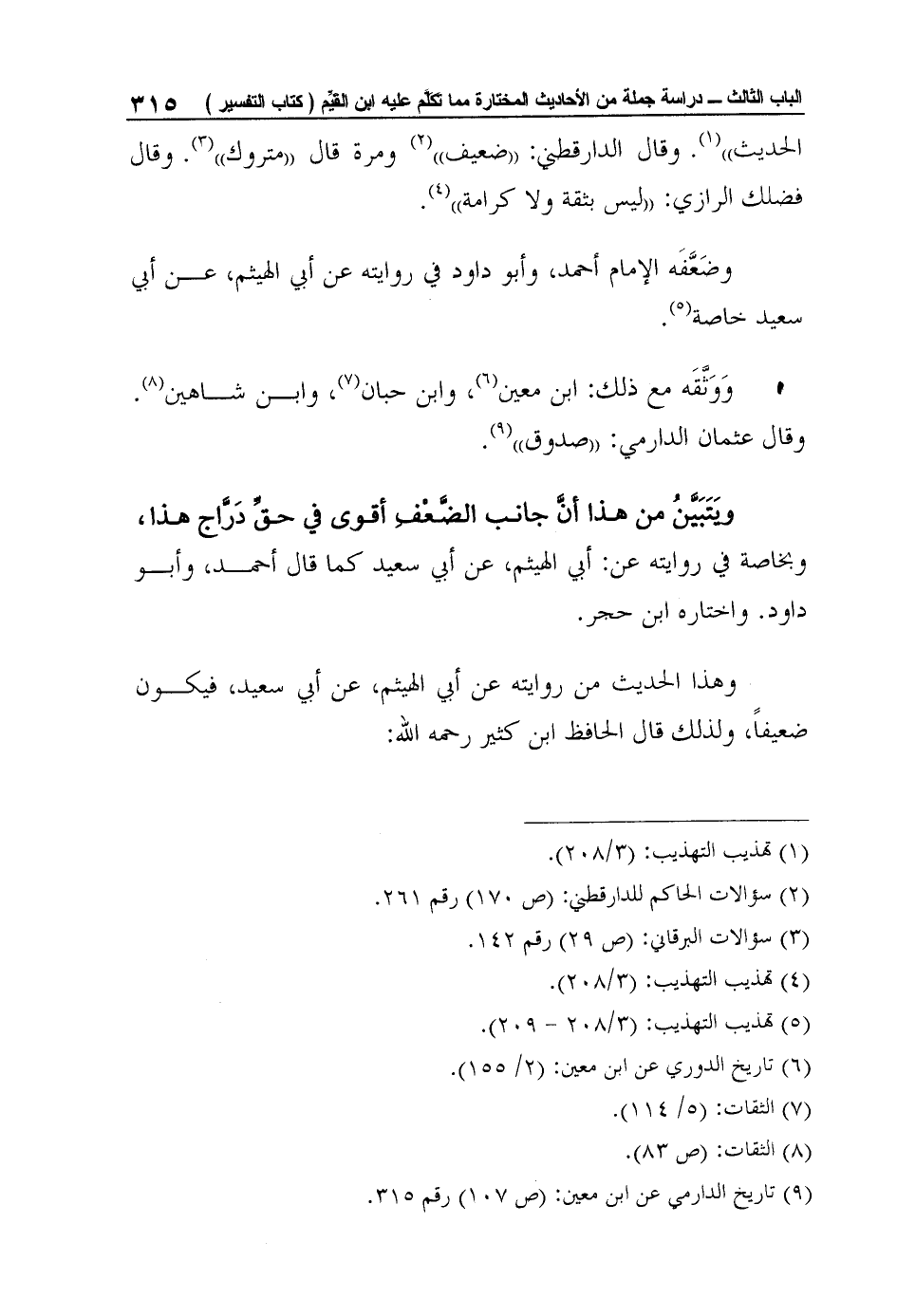 ويَتَبَيَّنُ من هذا أنَّ جانب الضَّعْفِ أقوى في حقِّ دَرَّاج هذا، وبخاصة في روايته عن: أبي الهيثم، عن أبي سعيد كما قال أحمد، وأبو داود. واختاره ابن حجر.