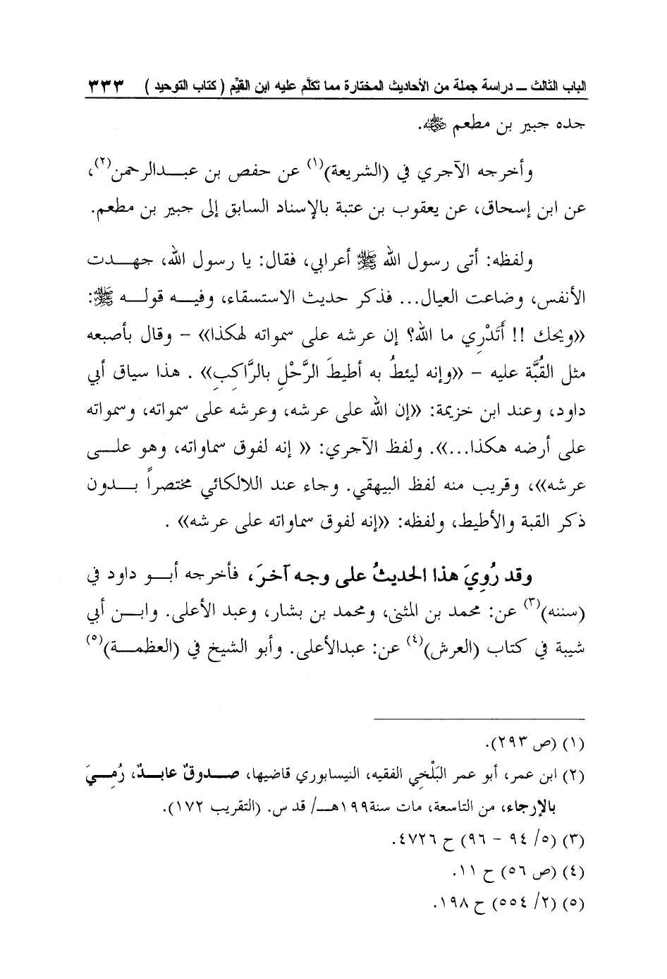 وأخرجه الآجري في (الشريعة) 1 عن حفص بن عبد الرحمن2، عن ابن إسحاق، عن يعقوب بن عتبة بالإسناد السابق إلى جبير بن مطعم.