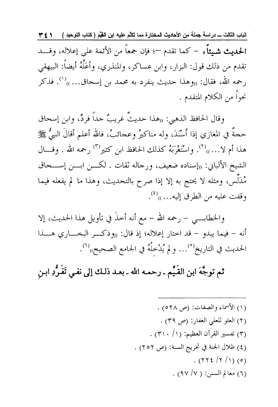 ثم توجَّهَ ابن القَيِّم - رحمه الله - بعد ذلك إلى نفي تَفَرُّدِ ابنِ