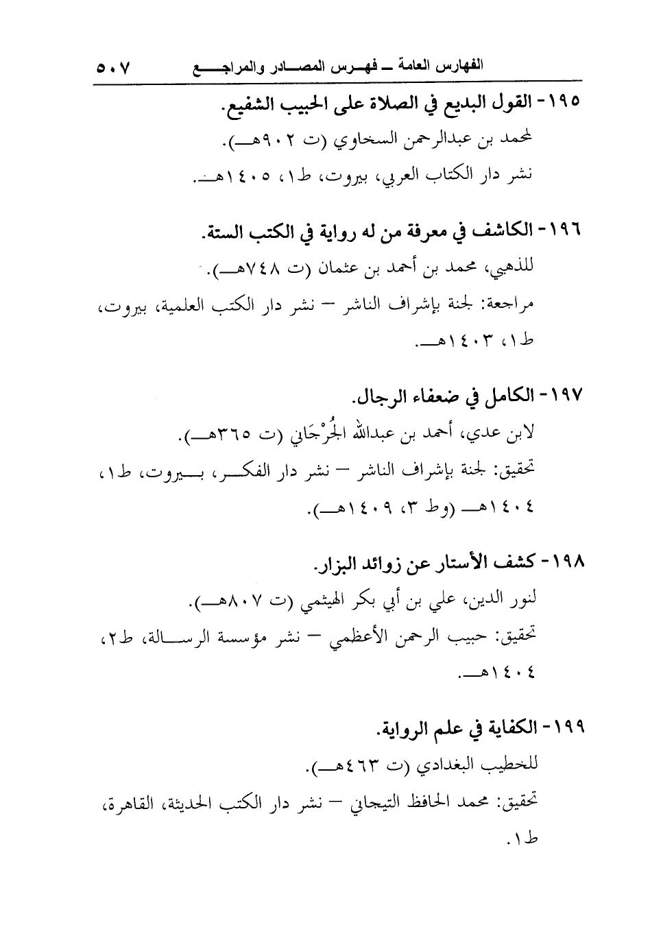 196- الكاشف في معرفة من له رواية في الكتب الستة.