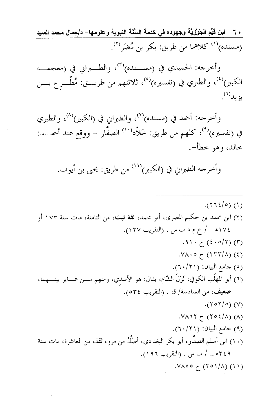 وأخرجه: الحميدي في (مسنده) 3، والطبراني في (معجمه الكبير) 4، والطبري في (تفسيره) 5، ثلاثتهم من طريق: مُطَّرِح بن يزيد6.
