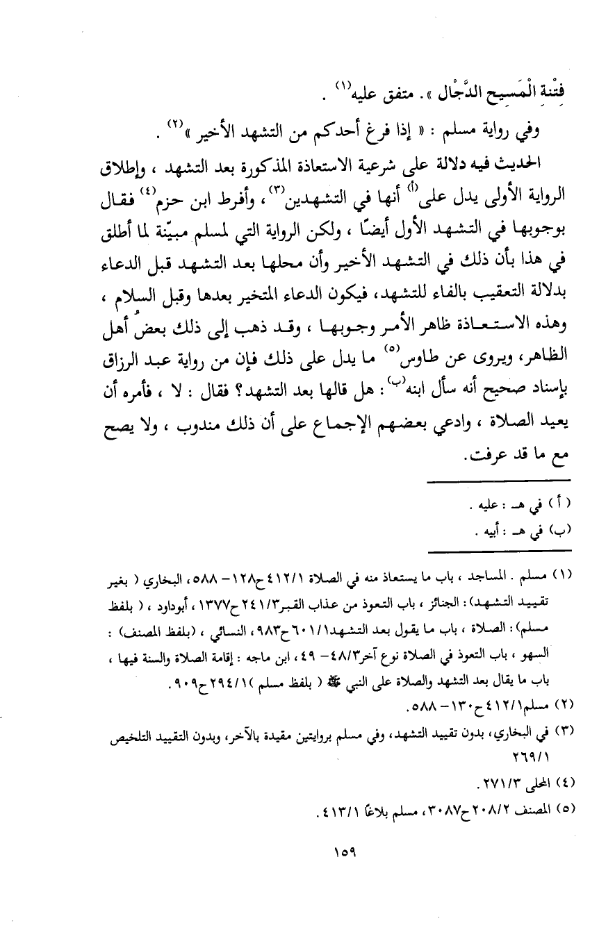 (¬1) مسلم. المساجد، باب ما يستعاذ منه في الصلاة 1/ 412 ح 128 - 588، البخاري (بغير تقييد التشهد): الجنائز، باب التعوذ من عذاب القبر 3/ 241 ح 1377، أبو داود، (بلفظ مسلم): الصلاة، باب ما يقول بعد التشهد 1/ 601 ح 983، النسائي، (بلفظ المصنف): السهو، باب التعوذ في الصلاة نوع آخر 3/ 48 - 49، ابن ماجه: إقامة الصلاة والسنة فيها، باب ما يقال بعد التشهد والصلاة على النبي - صلى الله عليه وسلم - (بلفظ مسلم (1/ 294 ح 909.