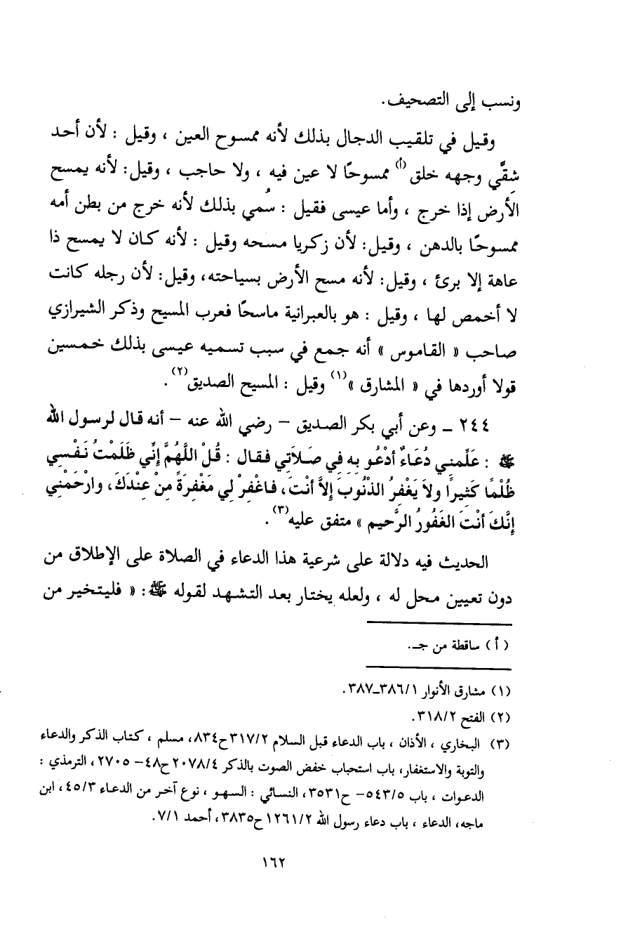 (¬3) البخاري، الأذان، باب الدعاء قبل السلام 2/ 317 ح 834، مسلم، كتاب الذكر والدعاء والتوبة والاستغفار، باب استحباب خفض الصوت بالذكر 4/ 2078 ح 48 - 2705، الترمذي: الدعوات، باب 5/ 543 - ح 3531، النسائي: السهو، نوع آخر من الدعاء 3/ 45، ابن ماجه، الدعاء، باب دعاء رسول الله 2/ 1261 ح 3835، أحمد 1/ 7.