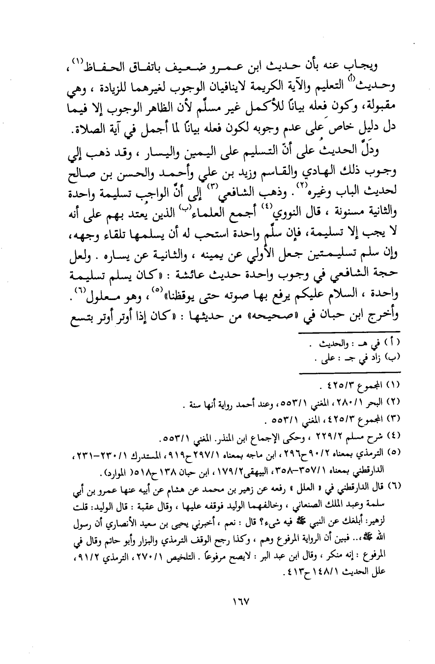 (¬5) الترمذي بمعناه 2/ 90 ح 296، ابن ماجه بمعناه 1/ 297 ح 919، المستدرك 1/ 230 - 231، الدارقطني بمعناه 1/ 357 - 358، البيهقي 2/ 179، ابن حبان 138 ح 518 (الموارد).