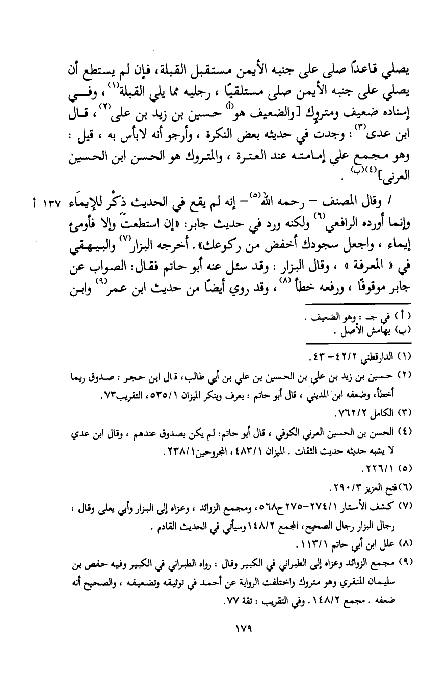 (¬2) حسين بن زيد بن علي بن الحسين بن علي بن أبي طالب، قال ابن حجر: صدوق ربما أخطأ، وضعفه ابن المديني، قال أبو حاتم: يعرف وينكر الميزان 1/ 535، التقريب 73.