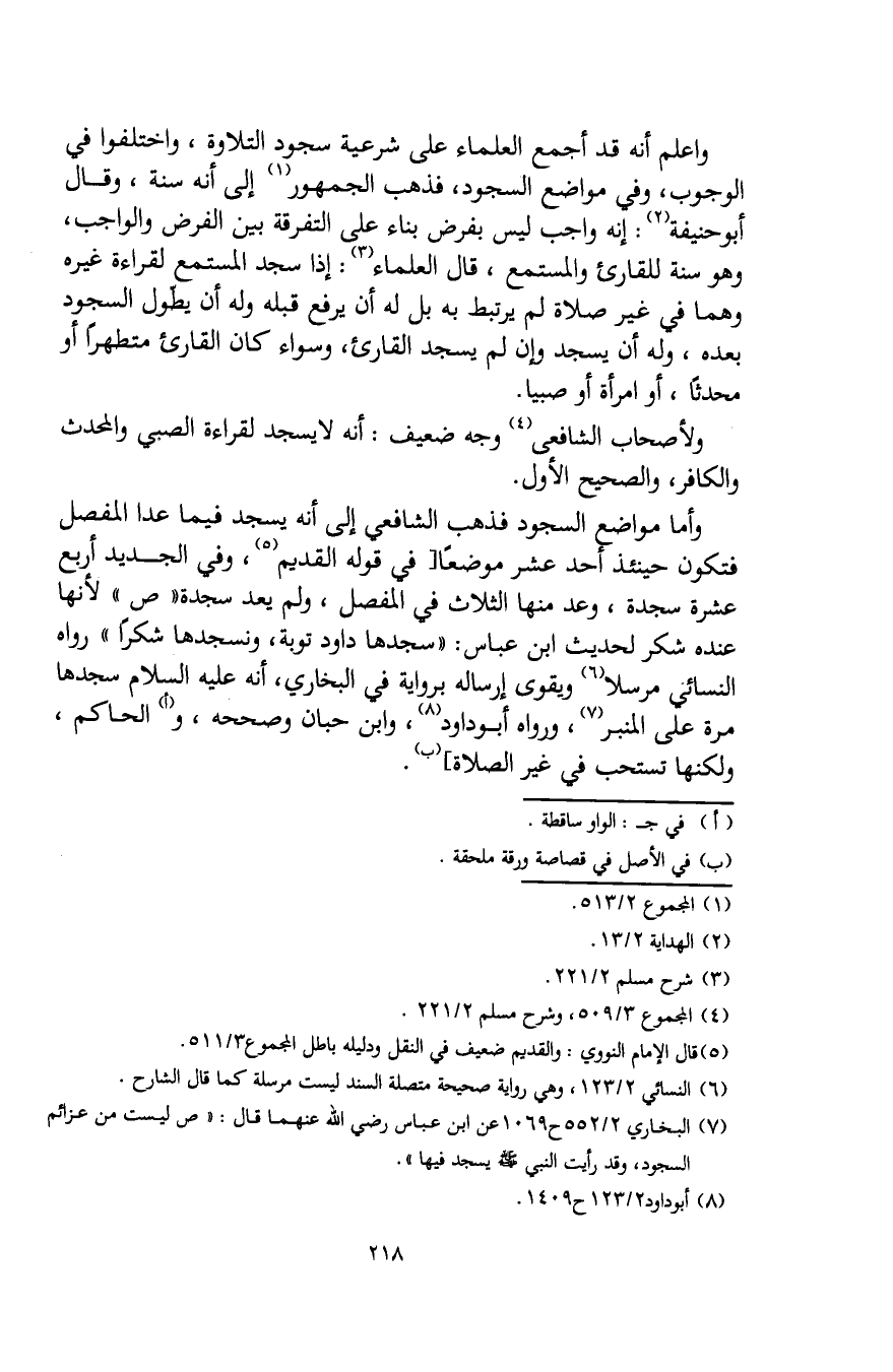 (¬7) البخاري 2/ 552 ح 1069 عن ابن عباس رضي اللَّه عنهما قال: "ص ليست من عزائم السجود، وقد رأيت النبي - صلى الله عليه وسلم - يسجد فيها".