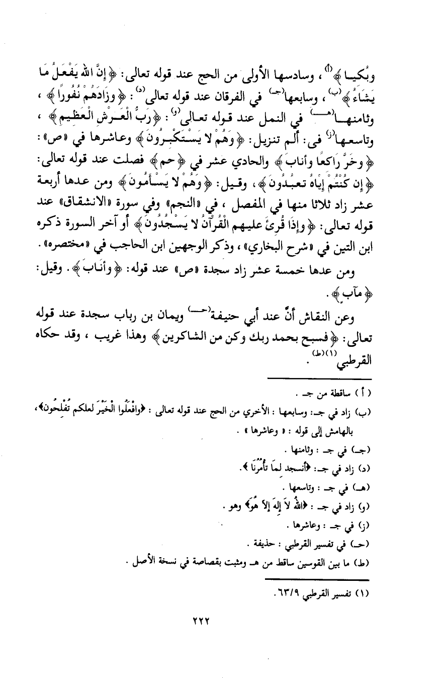 (ب) زاد في جـ: وسابعها: الأخرى من الحج عند قوله تعالى: {وَافْعَلُوا الْخَيْرَ لَعَلَّكُمْ تُفْلِحُونَ}، بالهامش إلى قوله: "وعاشرها".