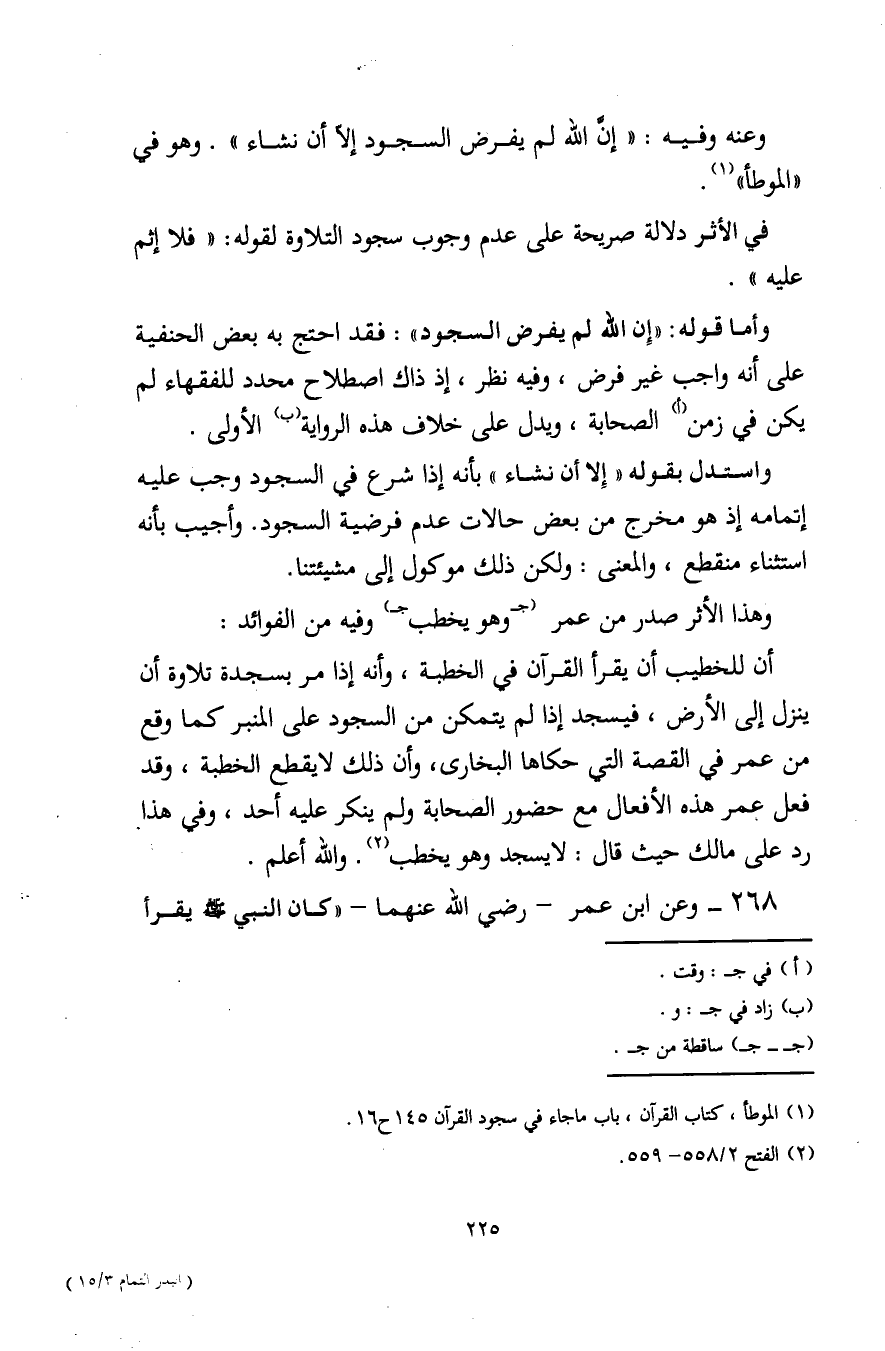 (¬1) الموطأ، كتاب القرآن، باب ما جاء في سجود القرآن 145 ح 16.