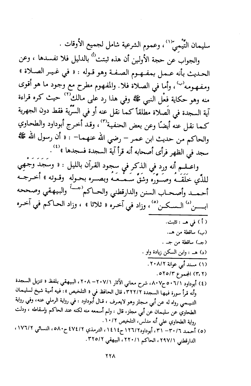 (¬4) أبو داود 1/ 506 ح 807، شرح معاني الآثار 1/ 207 - 208، البيهقي بلفظ "تنزيل السجدة وأنه قرأ سورة فيها السجدة 2/ 322، قال الحافظ في "التلخيص": فيه أمية شيخ لسليمان التيمي رواه له عن أبي مجلز وهو لا يعرف، قال أبو داود: في رواية الرملي عنه، وفي رواية الطحاوي عن سليمان عن أبي مجلز، قال: ولم أسمعه منه لكنه عند الحاكم بإسقاطه، ودلت رواية الطحاوي علي أنه مدلس، التلخيص 2/ 10.