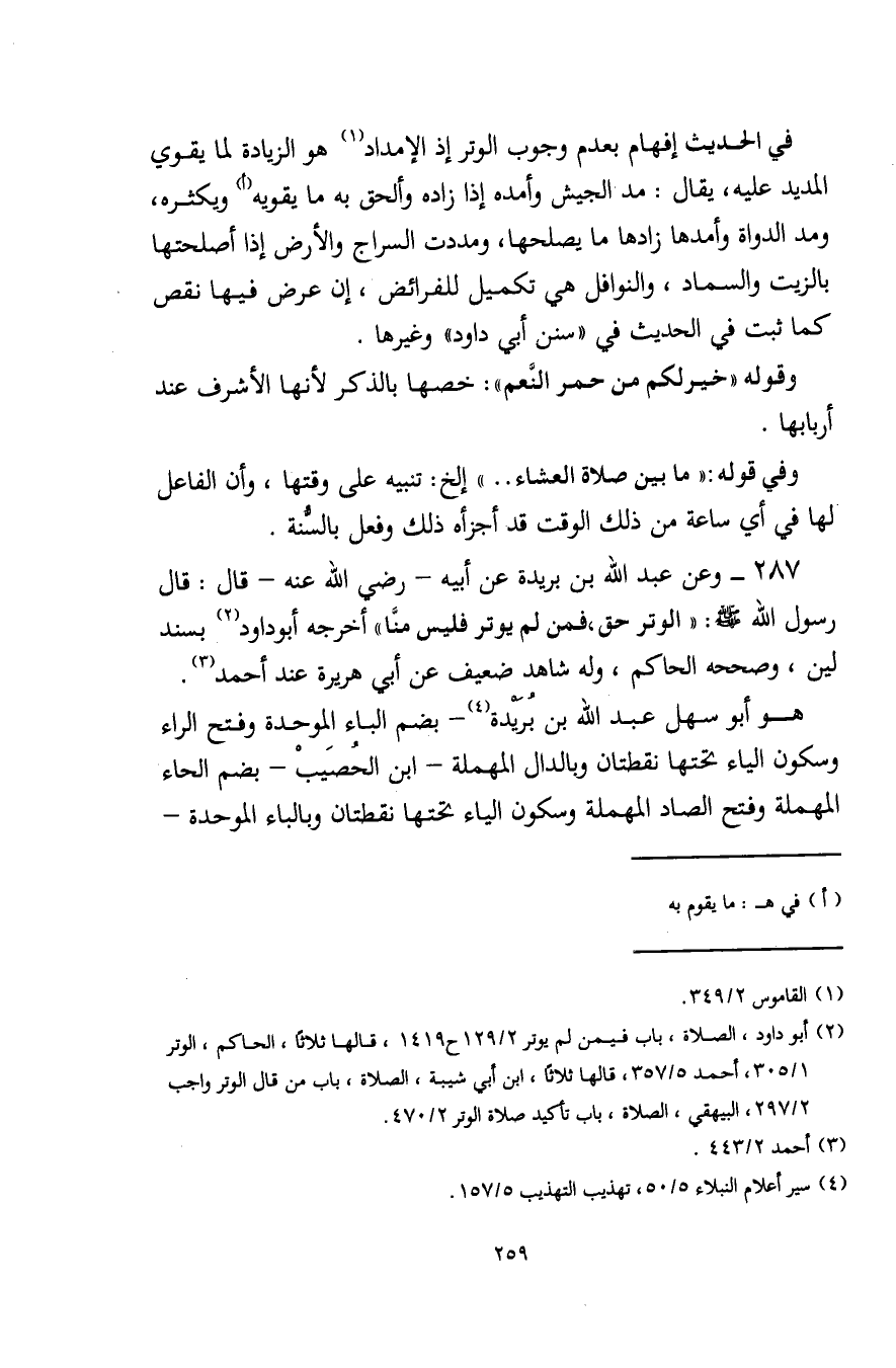 (¬2) أبو داود، الصلاة، باب فيمن لم يوتر 2/ 129 ح 1419، قالها ثلاثًا، الحاكم، الوتر 1/ 305، أحمد 5/ 357، قالها ثلاثًا، ابن أبي شيبة، الصلاة، باب من قال الوتر واجب 2/ 297، البيهقي، الصلاة، باب تأكيد صلاة الوتر 2/ 470.