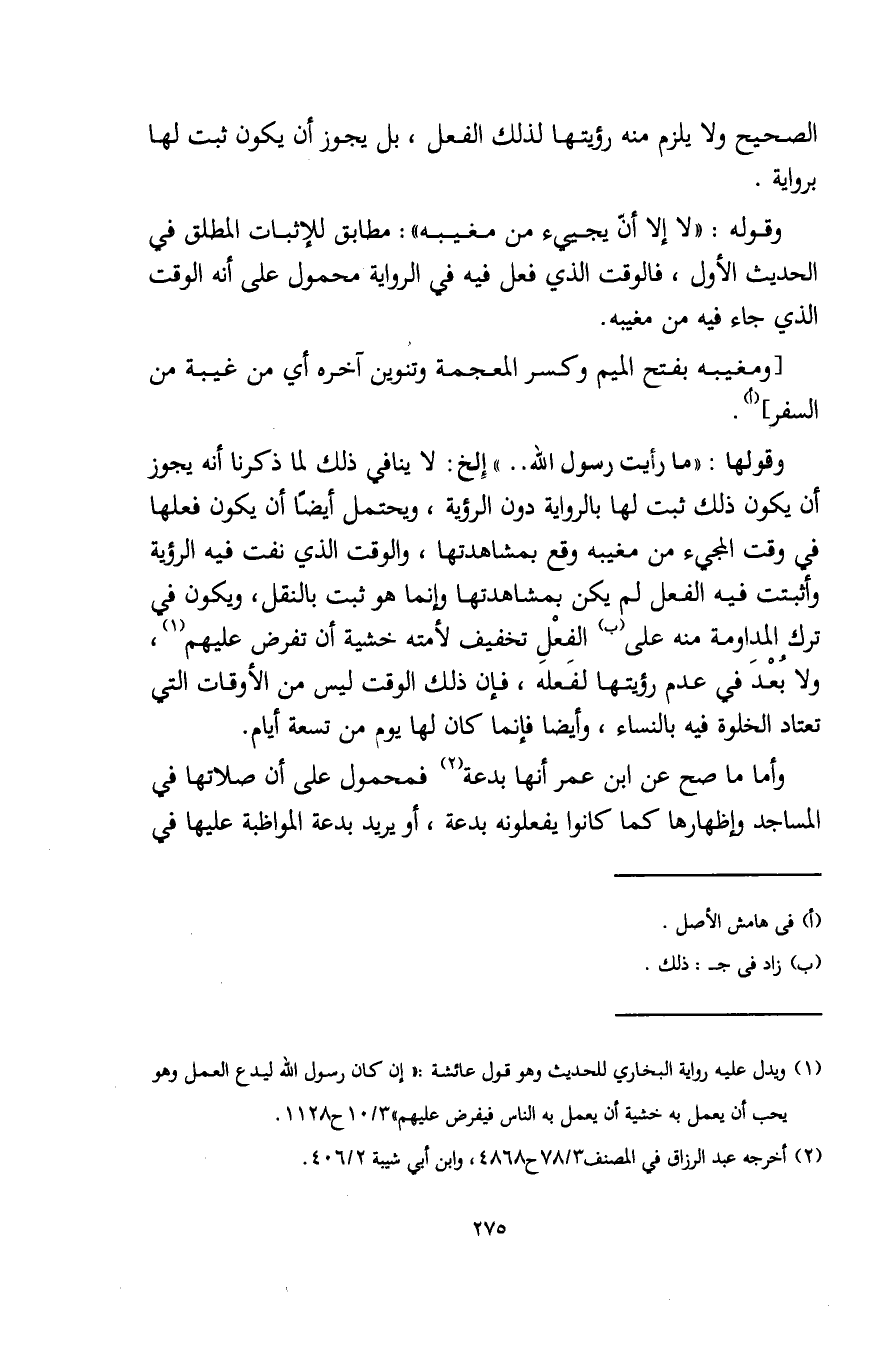 الصحيح ولا يلزم منه رؤيتها لذلك الفعل، بل يجوز أن يكون ثبت لها برواية.