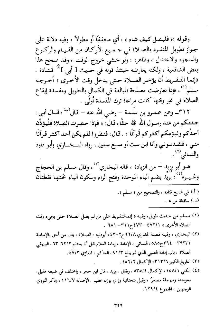 (¬4) الكنى 1/ 158، الإكمال 4/ 535، ويقال: يزيد، قال ابن حجر: واختلف في ضبطه فقيل: بموحدة ومهملة مصغرًا، وقيل بتحتانية وزاي بوزن عظيم. الإصابة 7/ 116، وذكر النووي الوجهين، المجموع 4/ 129.