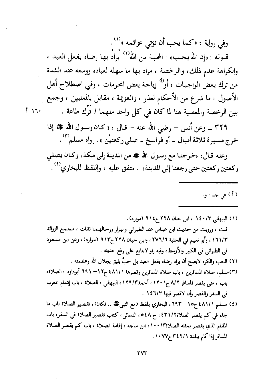 329 - وعن أنس - رضي الله عنه - قال: "كان رسول الله - صلى الله عليه وسلم - إِذا خرج مسيرة ثلاثة أميال -أو فراسخ- صلى ركعتيْن". رواه مسلم (¬3).