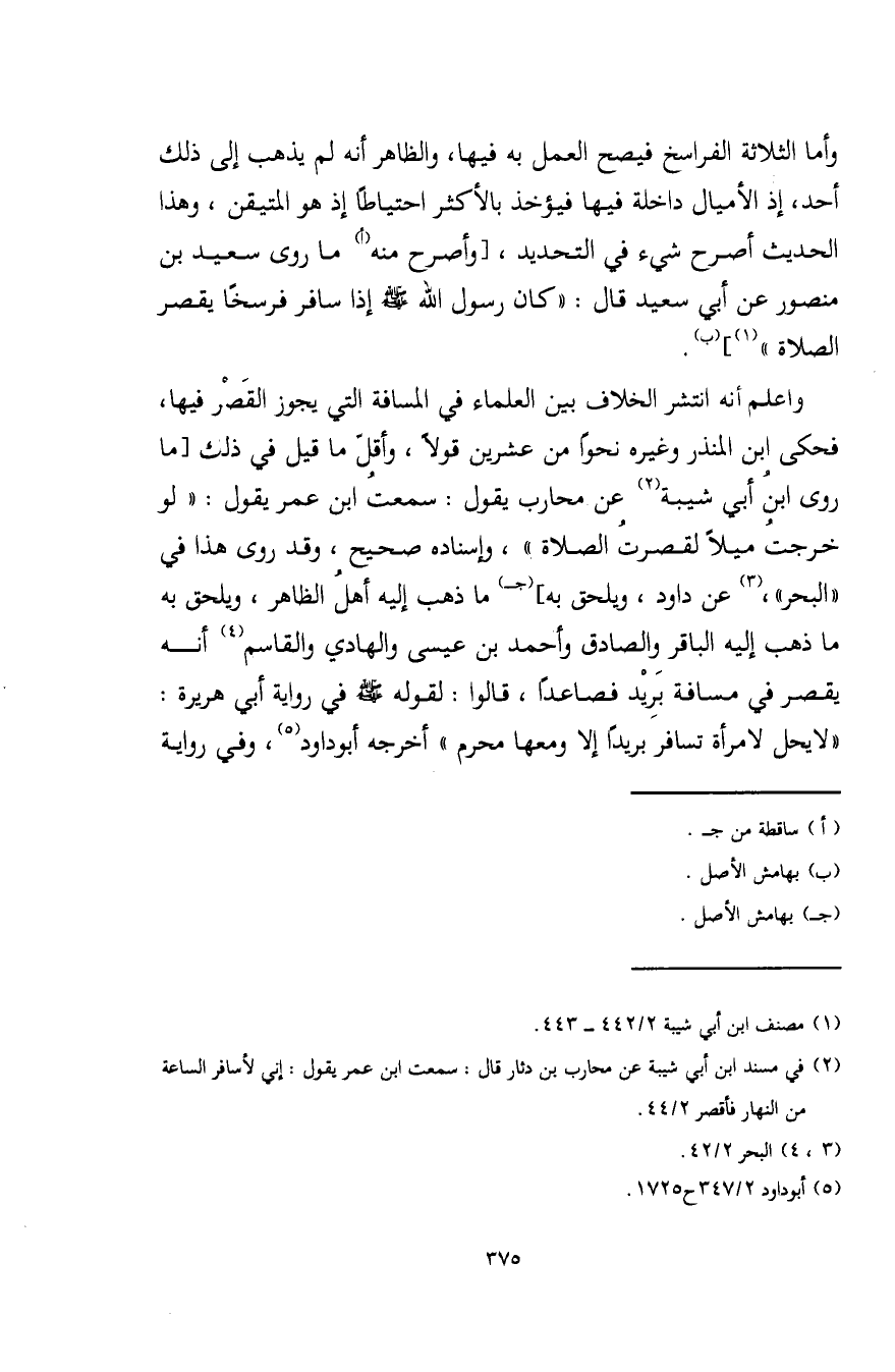 (¬2) في مسند ابن أبي شيبة عن محارب بن دثار قال: صمحت ابن عمر يقول: إني لأسافر الساعة من النهار فأقصر 2/ 44.