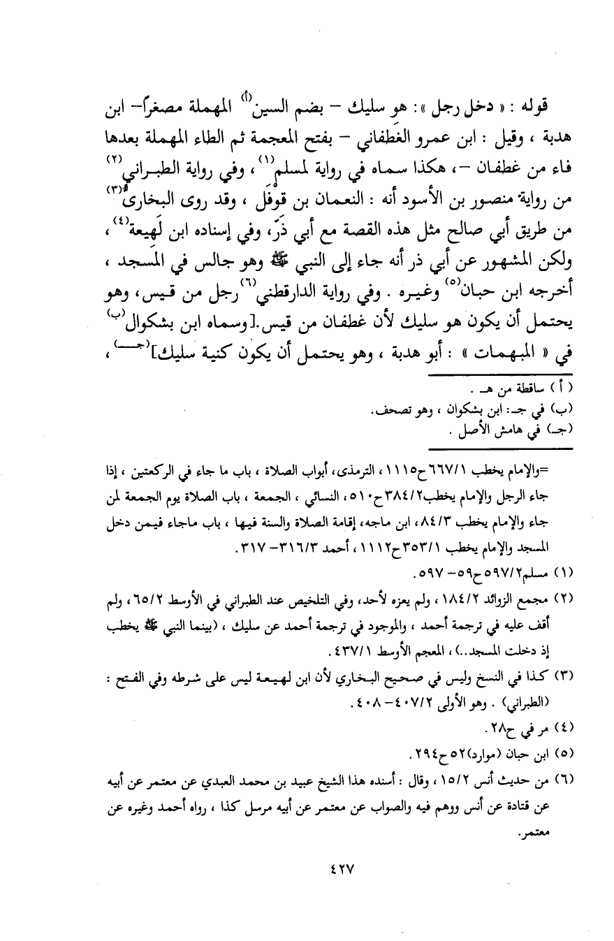 = والإمام يخطب 1/ 667 ح 1115، الترمذي، أبواب الصلاة، باب ما جاء في الركعتين، إذا جاء الرجل والإمام يخطب 2/ 384 ح 510، النسائي، الجمعة، باب الصلاة يوم الجمعة لمن جاء والإمام يخطب 3/ 84، ابن ماجه، إقامة الصلاة والسنة فيها، باب ما جاء فيمن دخل المسجد والإمام يخطب 1/ 353 ح 1112، أحمد 3/ 316 - 317.