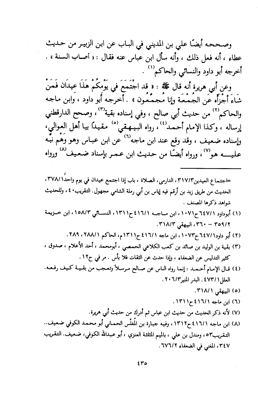 (¬1) أبو داود 1/ 647 ح 1071، ابن ماجه 1/ 416 ح 1311، النسائي 3/ 158، ابن خزيمة 2/ 359 - 360، البيهقي 3/ 318.