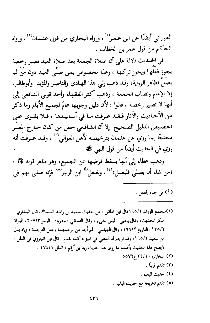 (¬1) مجمع الزوائد 2/ 195 قال ابن الملقن: من حديث سعيد بن راشد السماك، قال البخاري: منكر الحديث، وقال يحيى: ليس بشيء، وقال النسائي: متروك. البدر 3/ 207، الميزان 2/ 135، التاريخ 2/ 199، وقال الهيثمي: لم أجد من ترجمهما وجعل الترجمة، زياد بدل من سعيد 2/ 195، وقد ترجم له الذهبي في الميزان كما تقدم. قال ابن الجوزي في العلل: لا يصح هذا الحديث وأصلح ما روى هذا حديث زيد بن أرقم، العلل 1/ 474.