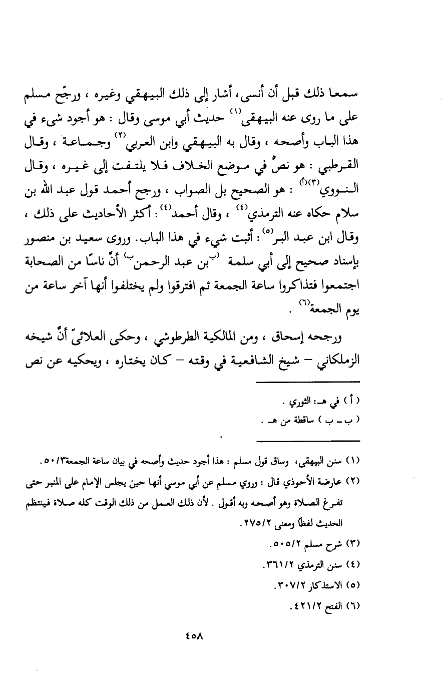 (¬1) سنن البيهقي، وساق قول مسلم: هذا أجود حديث وأصحه في بيان ساعة الجمعة 3/ 50.
