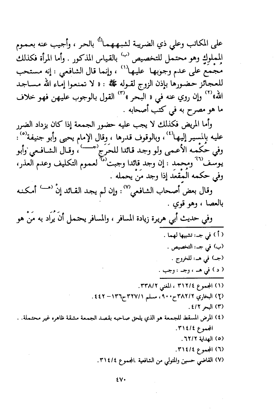 (¬4) المرض المسقط للجمعة هو الذي يلحق صاحبه بقصد الجمعة مشقة ظاهره غير محتملة. المجموع 4/ 314.