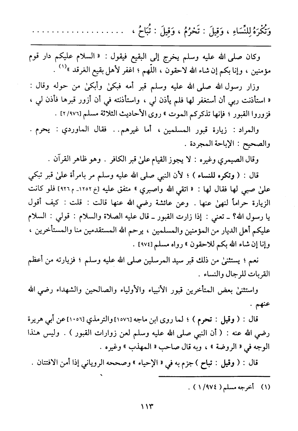 والمراد: زيارة قبور المسلمين, أما غيرهم .. فقال الماوردي: يحرم. والصحيح: الإباحة المجردة.