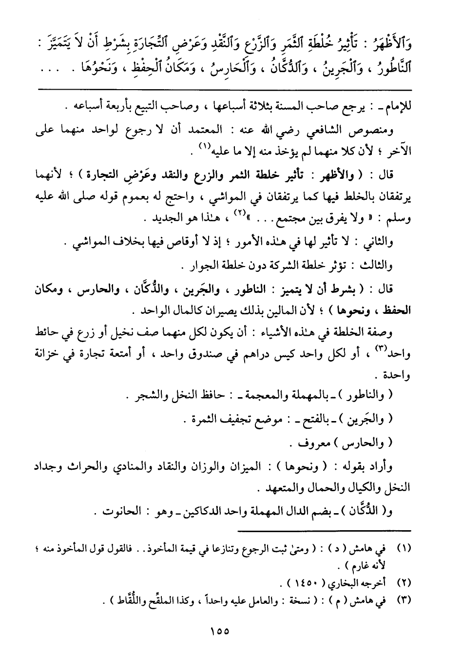 قال: (بشرط أن لا يتميز: الناطور، والجرين، والدكان، والحارس، ومكان الحفظ، ونحوها)؛ لأن المالين بذلك يصيران كالمال الواحد.