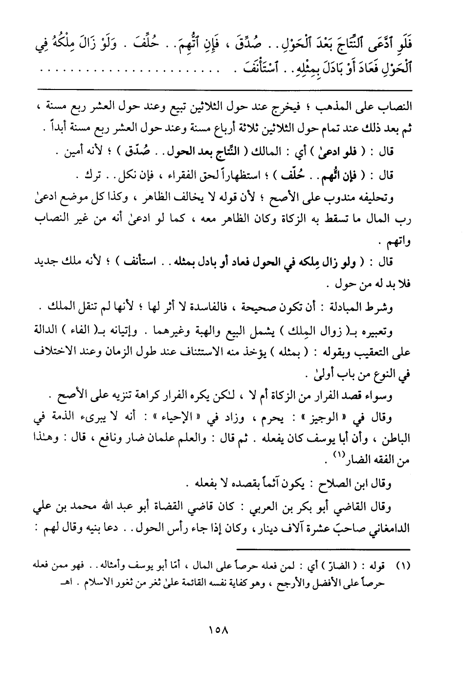 قال: (ولو زال ملكه في الحول فعاد أو بادل بمثله .. استأنف)؛ لأنه ملك جديد فلا بد من حول.