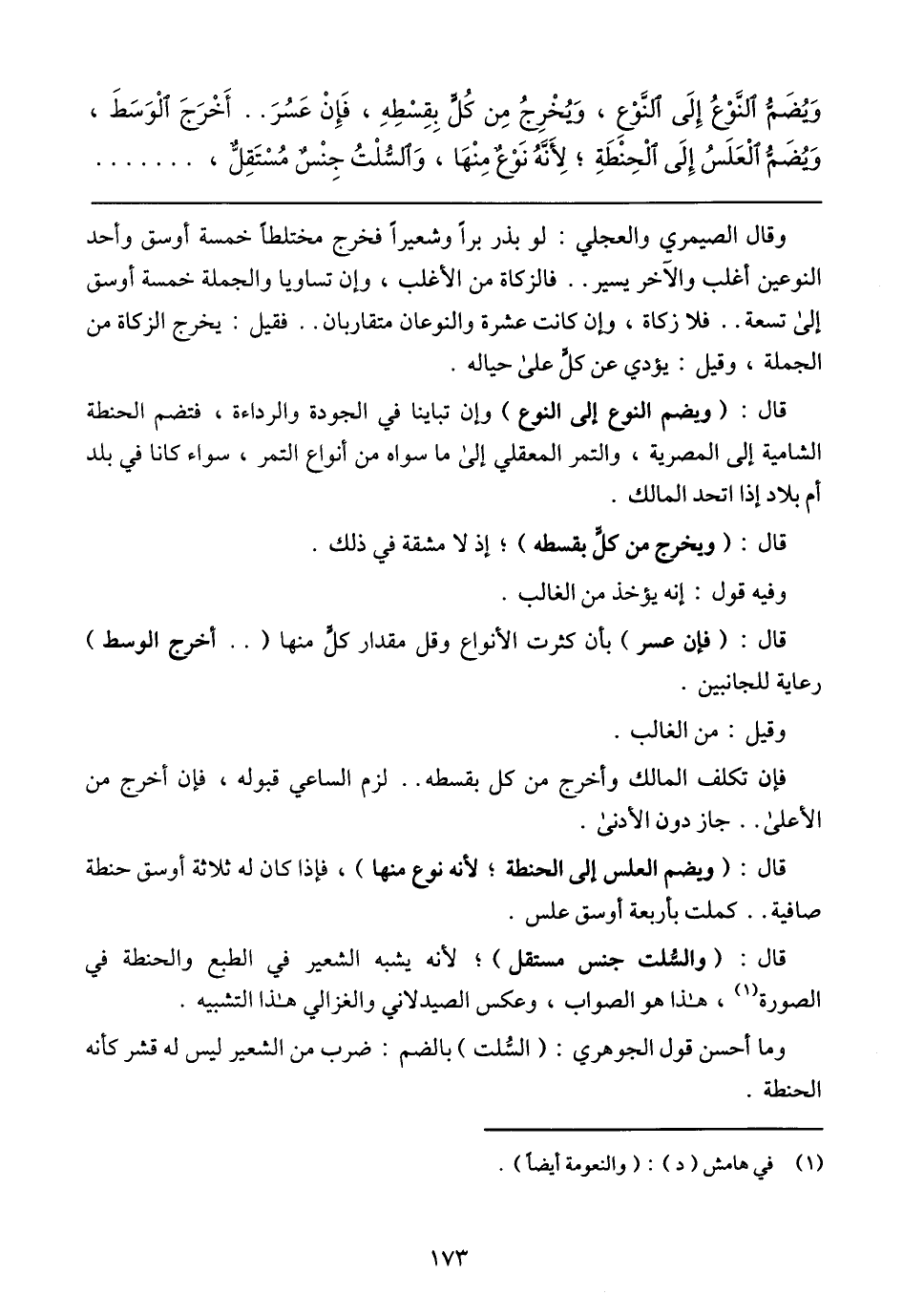 قال: (ويضم النوع إلى النوع) وإن تباينا في الجودة والرداءة، فتضم الحنطة الشامية إلى المصرية، والتمر المعقلي إلى ما سواه من أنواع التمر، سواء كانا في بلد أم بلاد إذا اتحد المالك.