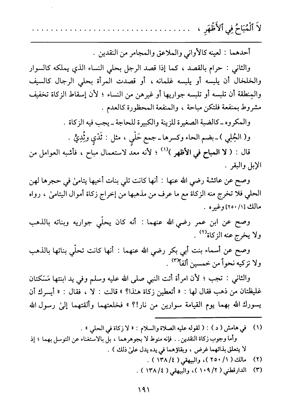 فقال لها: أتعطين زكاة هذا؟ قالت لا , فقال أيسرك أن يسورك الله بهما يوم القيامة سوارين من