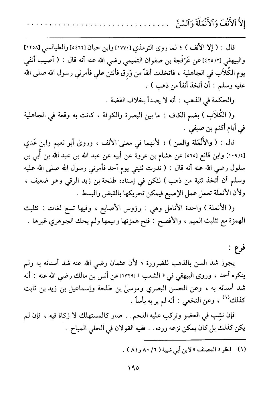 إِلَّا الأَنْفَ والأَنْمَلَةَ والسِّنَّ