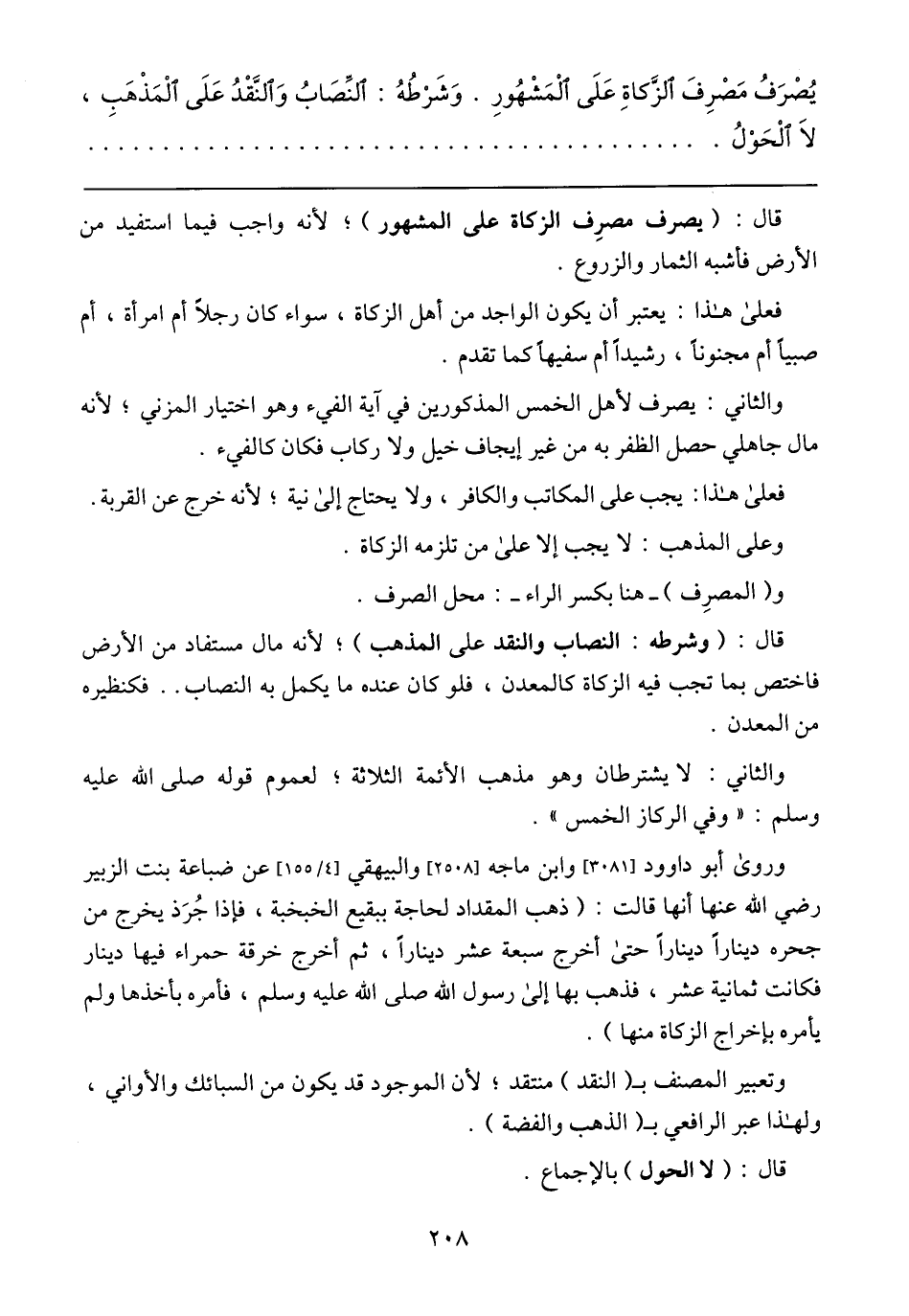وروى أبو داوود [3081] وابن ماجه [2508] والبيهقي [4/ 155] عن ضباعة بنت الزبير رضي الله عنها أنها قالت: (ذهب المقداد لحاجة ببقيع الخبخبة، فإذا جرد يخرج من حجر دينارًا دينارًا حتى أخرج سبعة عشر دينارًا، ثم أخرج خرقة حمراء فيها دينار فكانت ثمانية عشر، فذهب بها إلى رسول الله صلى الله عليه وسلم، فأمره بأخذها ولم يأمره بإخراج الزكاة منها).وتعبير المصنف ب (النقد) منتقد؛ لأن الموجود قد يكون من السبائك والأواني، ولهذا عبر الرافعي ب (الذهب والفضة).