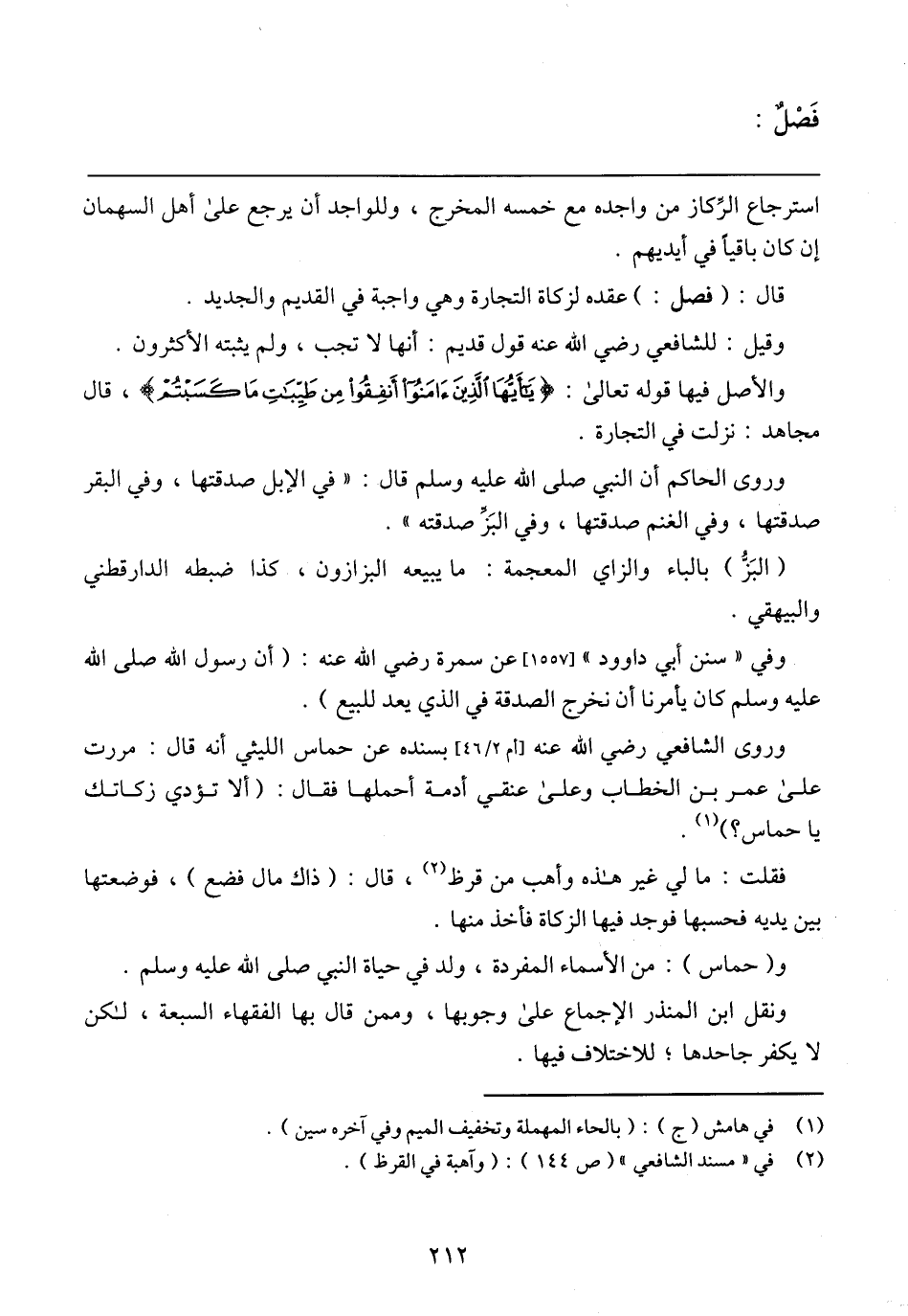 وروى الشافعي رضي الله عنه [أم 2/ 46] بسنده عن حماس الليثي أنه قال: مررت على عمر بن الخطاب وعلى عنقي أدمة أحملها فقال: (ألا تؤدي زكاتك يا حماس؟).