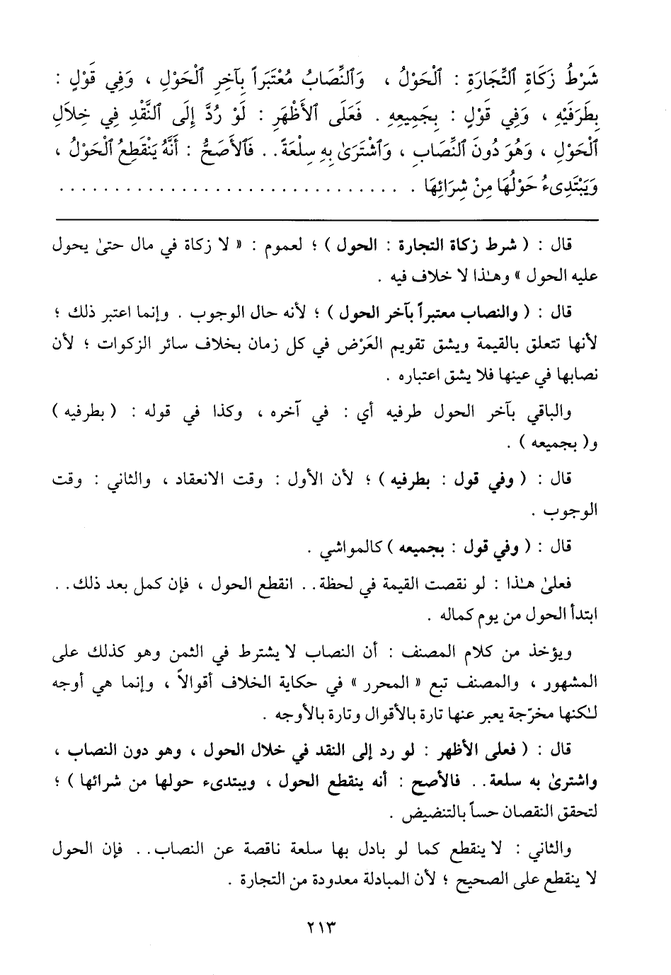 قال: (شرط زكاة التجارة: الحول)؛ لعموم: (لا زكاة في مال حتى يحول عليه الحول) وهذا لا خلاف فيه.