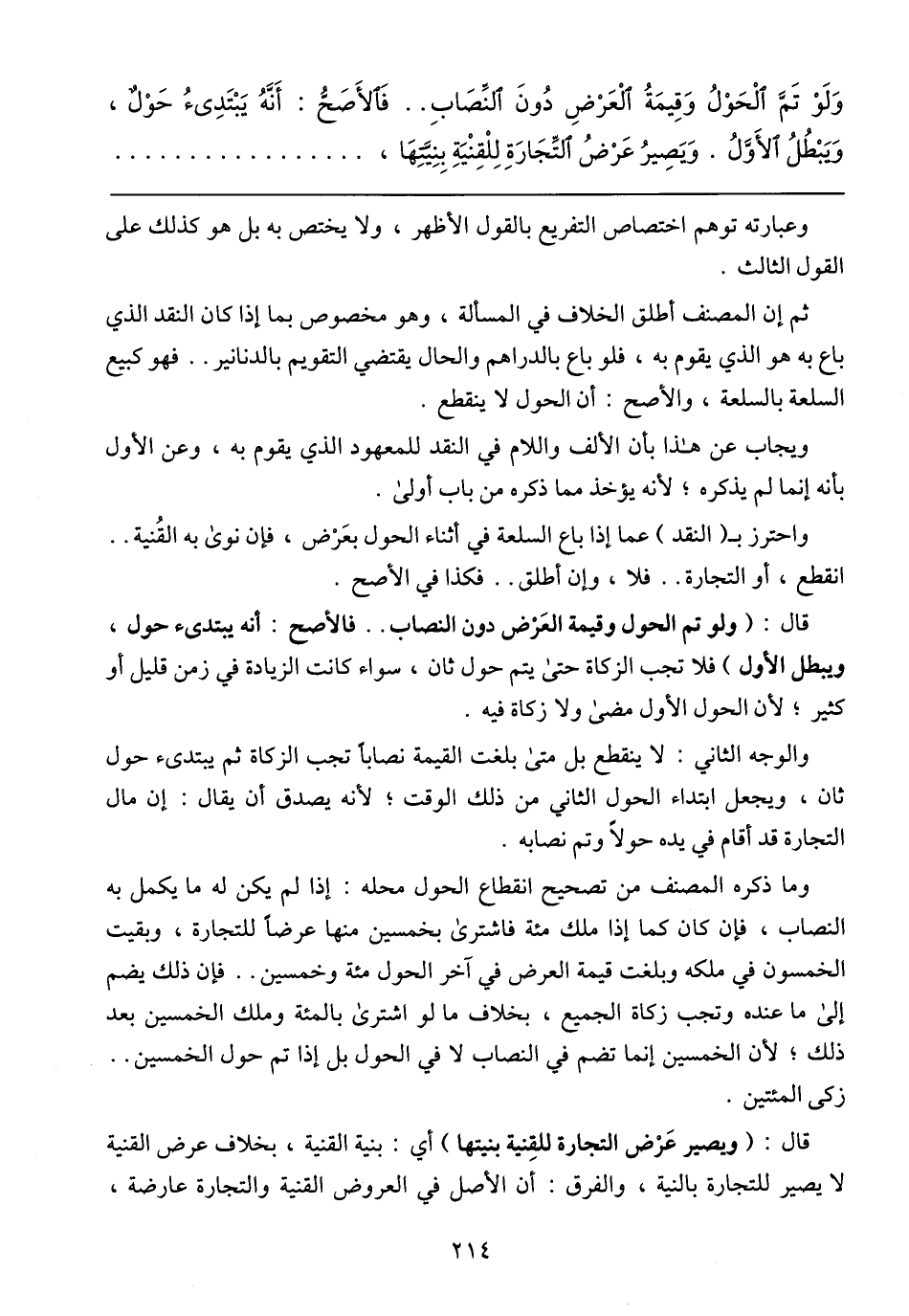واحترز ب (النقد) عما إذا باع السلعة في أثناء الحول بعرض، فإن نوى به القنية ... انقطع، أو التجارة ... فلا، وإن أطلق ... فكذا في الأصح.