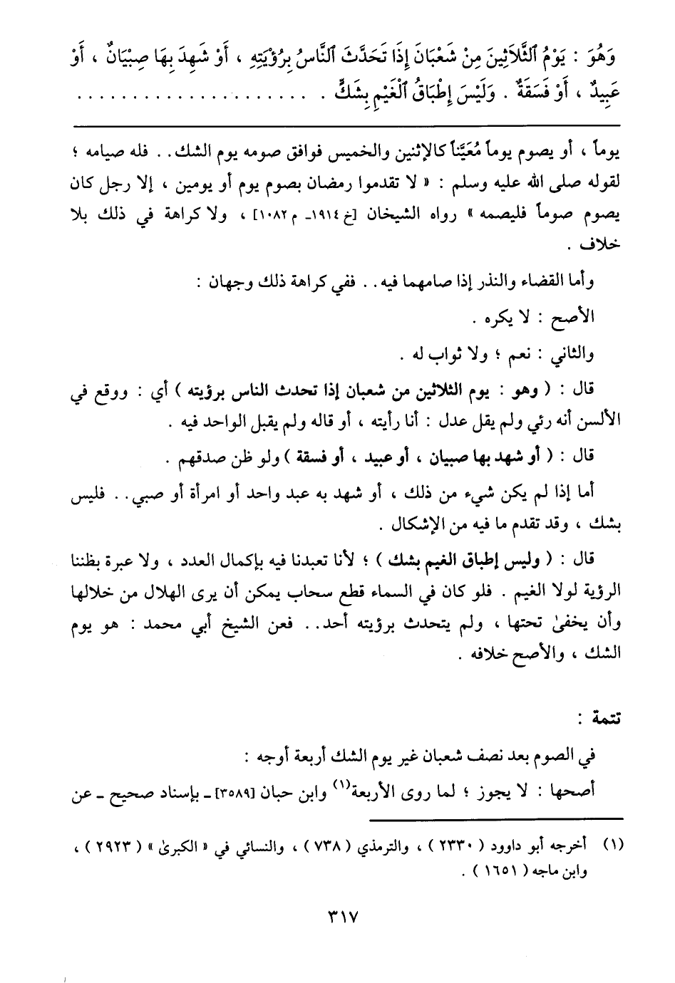 في الصوم بعد نصف شعبان غير يوم الشك أربعة أوجه:
