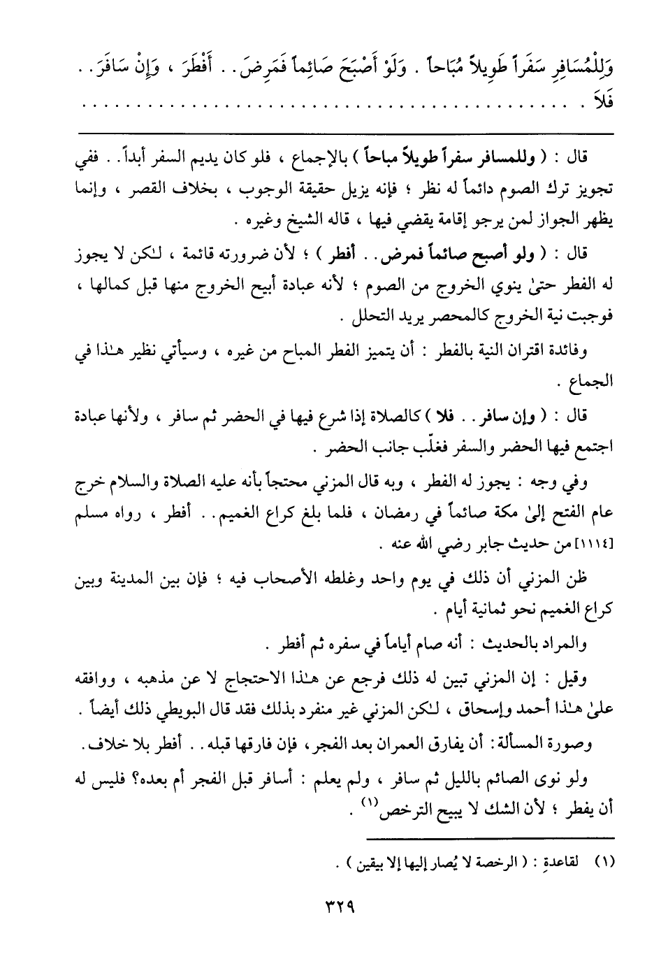 وصورة المسألة: أن يفارق العمران بعد الفجر، فإن فارقها قبله .. أفطر بلا خلاف.