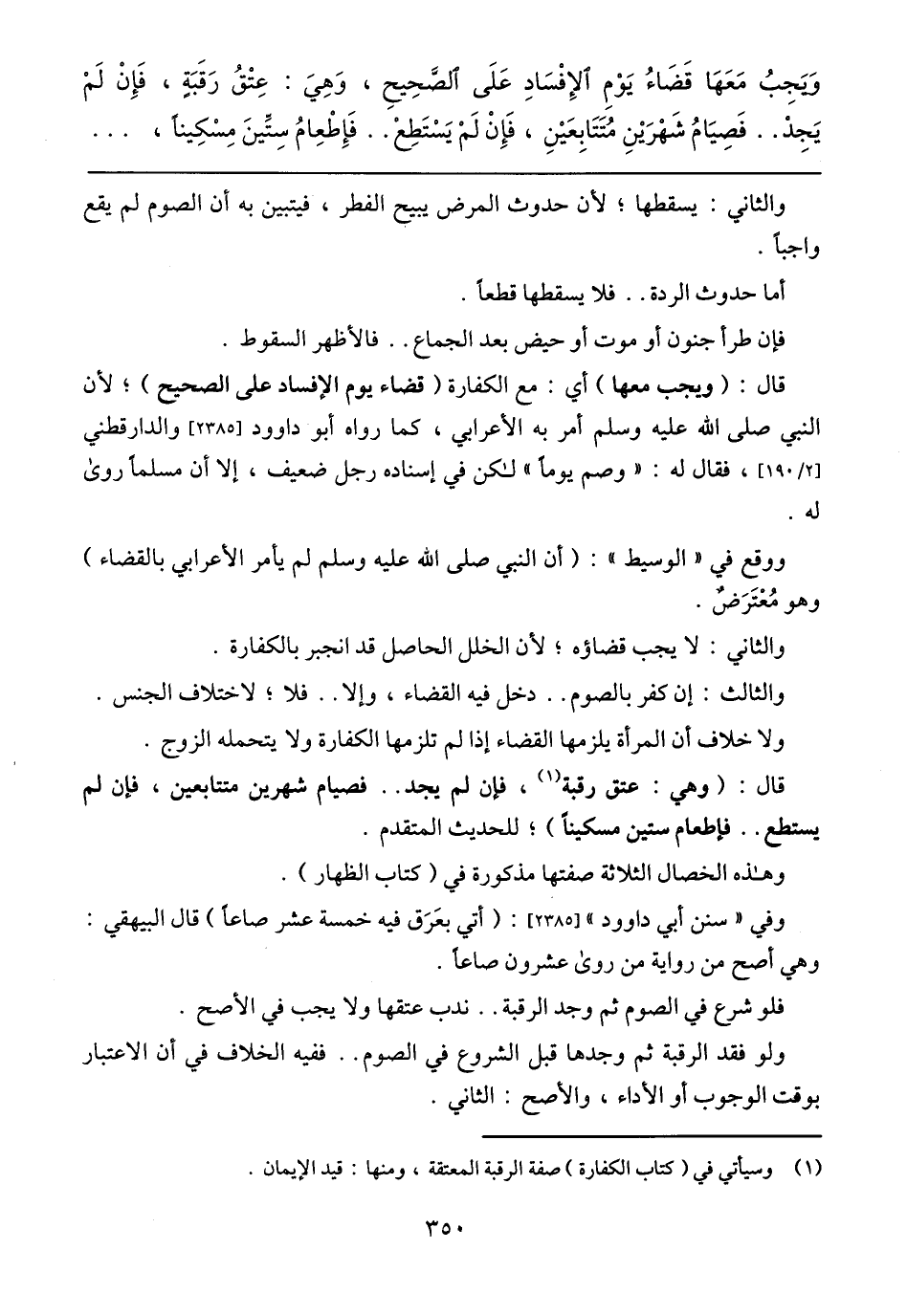 ووقع في: الوسيط (: (أن النبي صلى الله عليه وسلم لم يأمر الأعرابي بالقضاء) وهو مُعْتَرَضٌ.