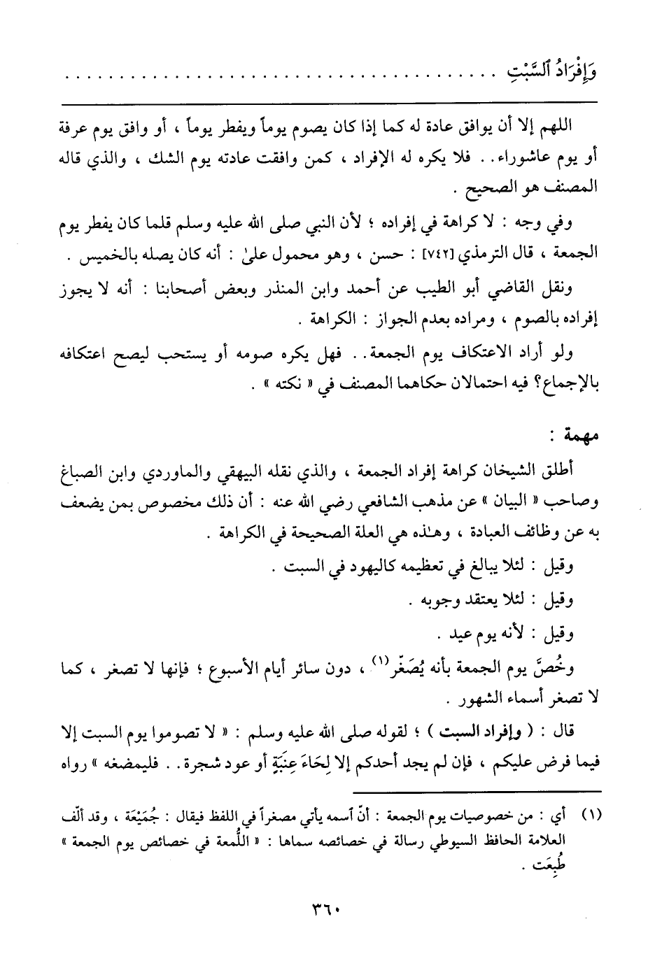 وَإِفْرَادُ السَّبْتِ
