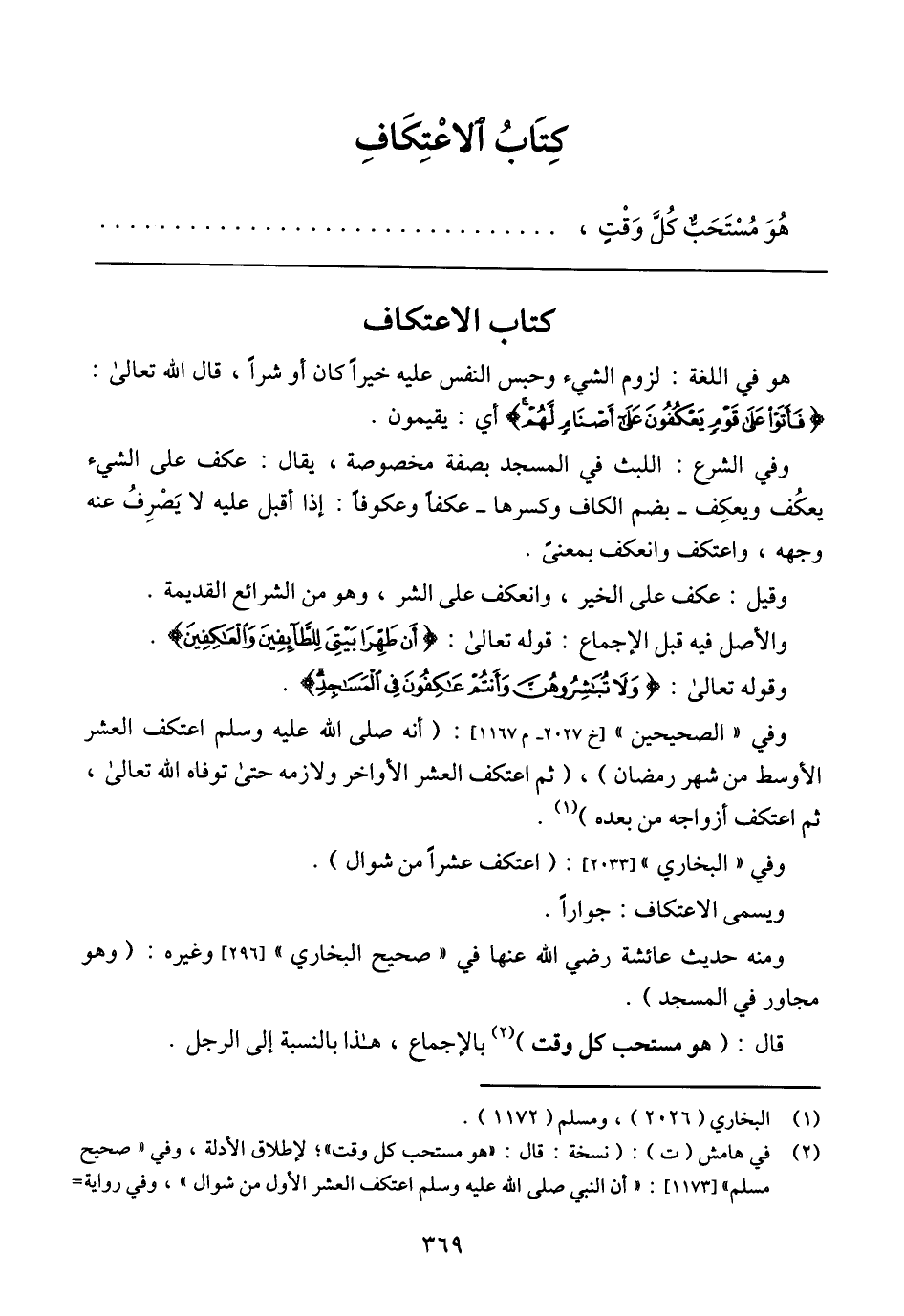 وفي (الصحيحين) [خ2027 - م 1167]: (أنه صلى الله عليه وسلم اعتكف العشر الأوسط من شهر رمضان)، (ثم اعتكف العشر الأواخر ولازمه حتى توفاه الله تعالى، ثم اعتكف أزواجه من بعده).