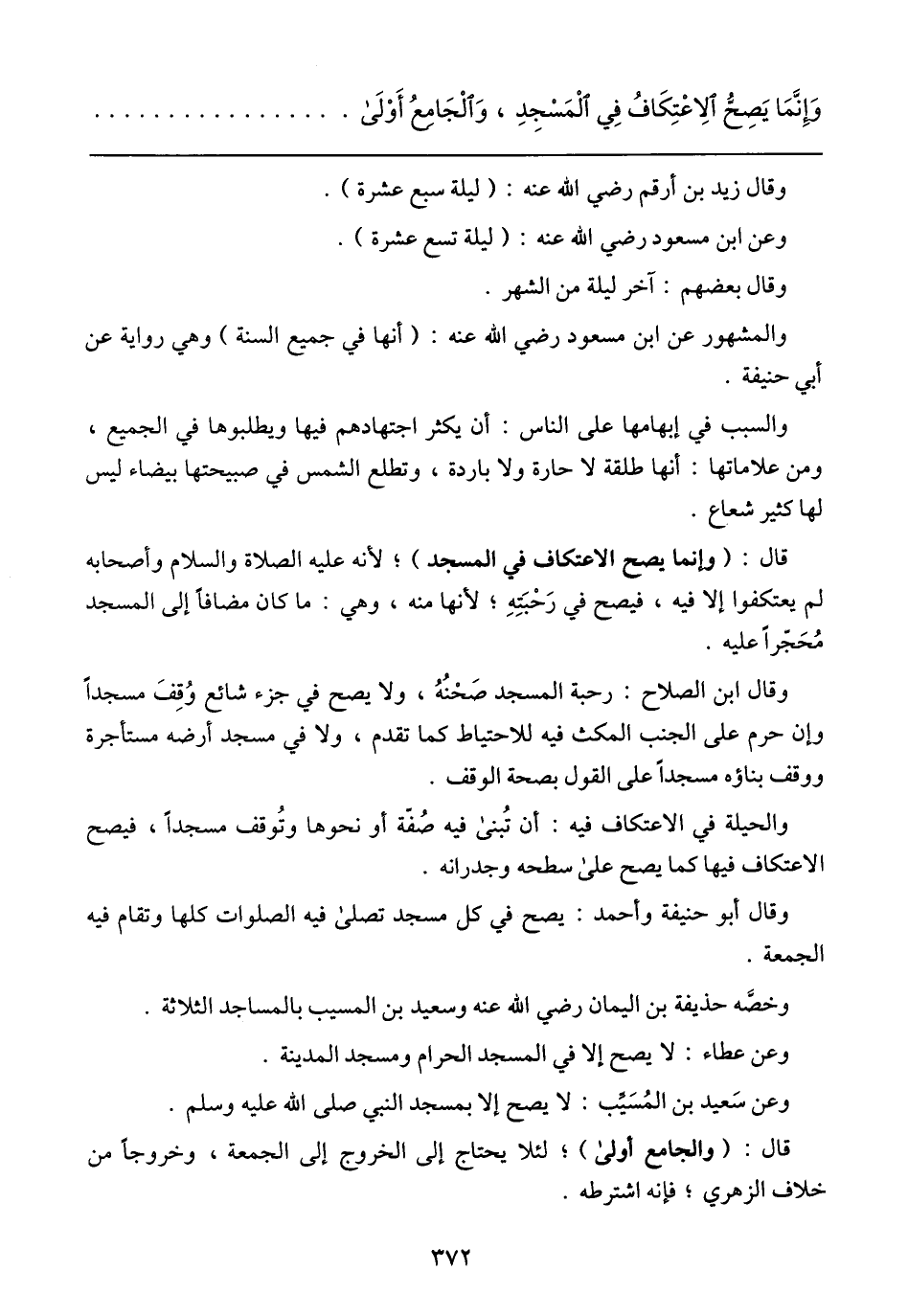 وعن سَعيد بن المُسَيِّب: لا يصح إلا بمسجد النبي صلى الله عليه وسلم.
