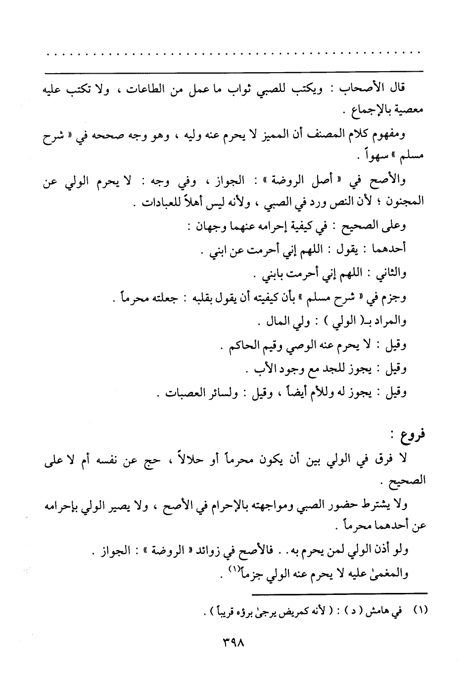 والأصح في (أصل الروضة)): الجواز، وفي وجه: لا يحرم الولي عن المجنون؛ لأن النص ورد في الصبي، ولأنه ليس أهلًا للعبادات.