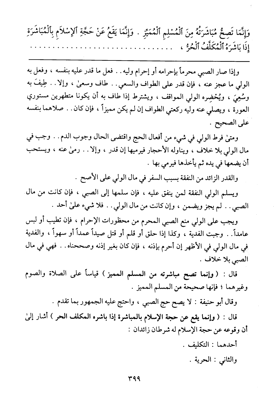 وَإِنَّمَا تَصِحُّ مُبَاشَرَتُهُ مِنَ الْمُسْلِمِ الْمُمَيِّزِ. وَإِنَّمَا يَقَعُ عَنْ حَجَّةِ الإِسْلاَمِ بِالْمُبَاشَرَةِ إِذَا بَاشَرَةُ الْمُكَلَّفُ الْحُرُّ،