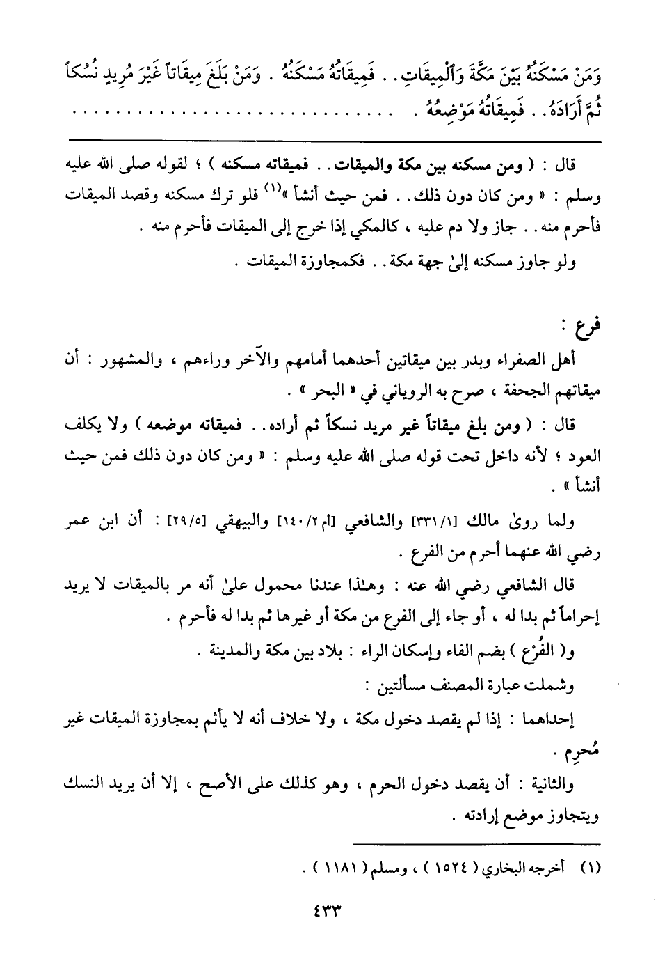 قال الشافعي رضي الله عنه: وهذا عندنا محمول على أنه مر بالميقات لا يريد إحرامًا ثم بدا له، أو جاء إلى الفرع من مكة أو غيرها ثم بدل له فأحرم.