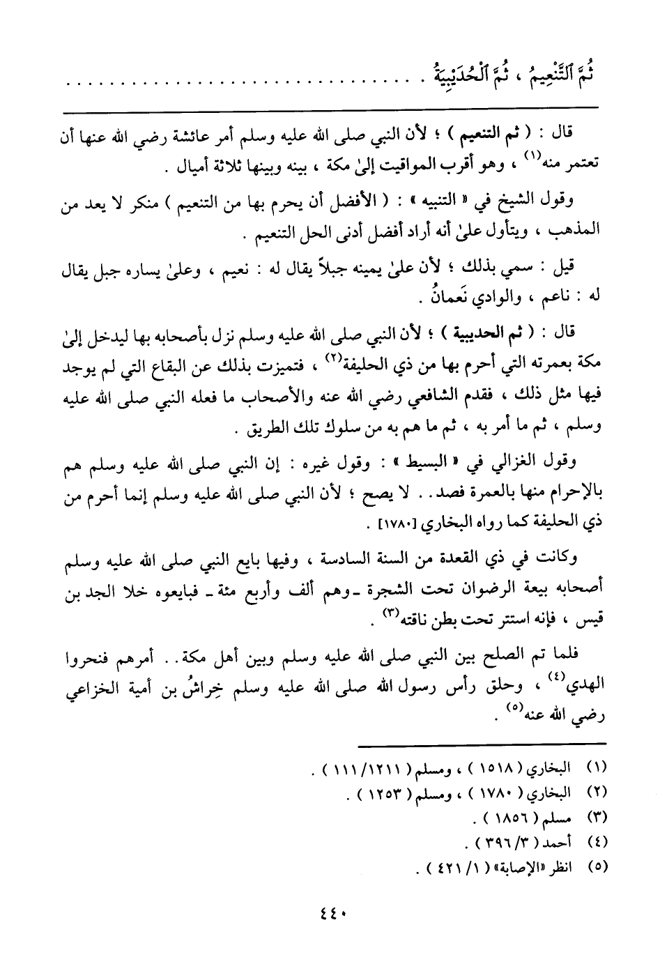 ثُمَّ التَّنْعِيمِ ثُمَّ الْحُدَيْبِيَةِ