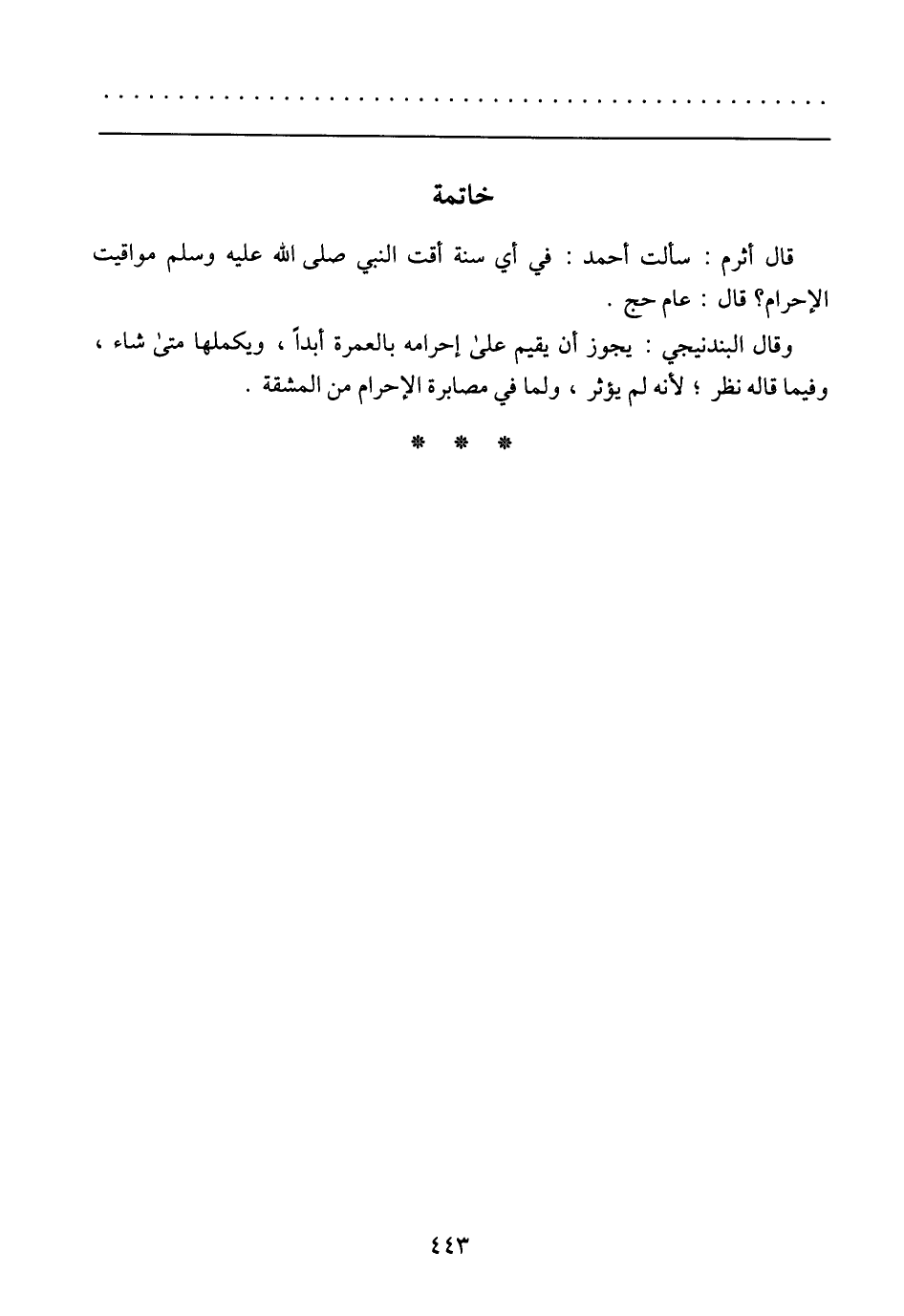 قال أثرم: سألت أحمد: في أي سنة أقت النبي صلى الله عليه وسلم مواقيت الإحرام؟ قال: عام حج.