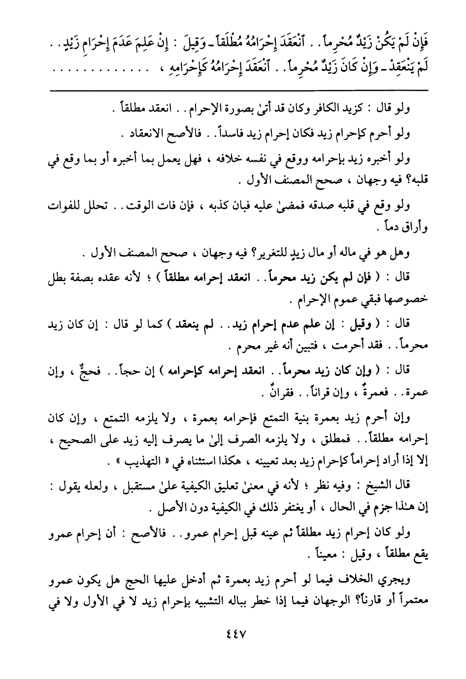 فَإِنْ لَمْ يَكُنْ زَيْدٌ مُحْرِمًا انْعَدَّ إحْرَامُهُ مُطْلَقًا، وَقِيلَ إنْ عَلِمَ عَدَمَ إحْرَامِ زَيْدٍ لَمْ يَنْعَقِدْ، وَإِنْ كَانَ زَيْدٌ مُحْرِمًا انْعَقَدَ إحْرَامُهُ كَإِحْرَامِهِ،