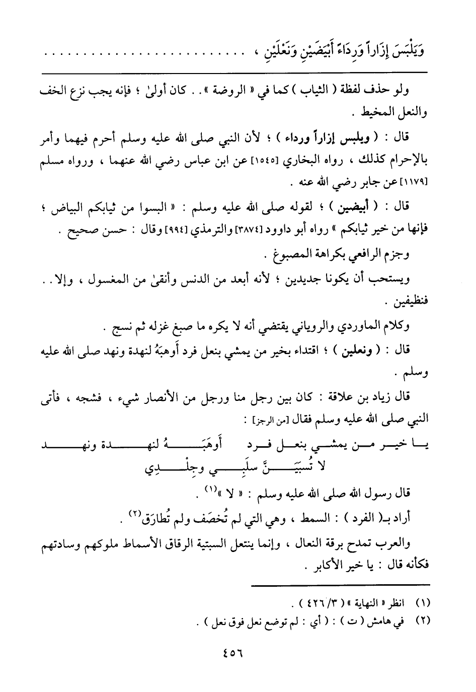 وَيَلْبِسِ إِزَارًا وَرِدَاَءً أَيْيَضَيْنِ وَنَعْلَيْينِ