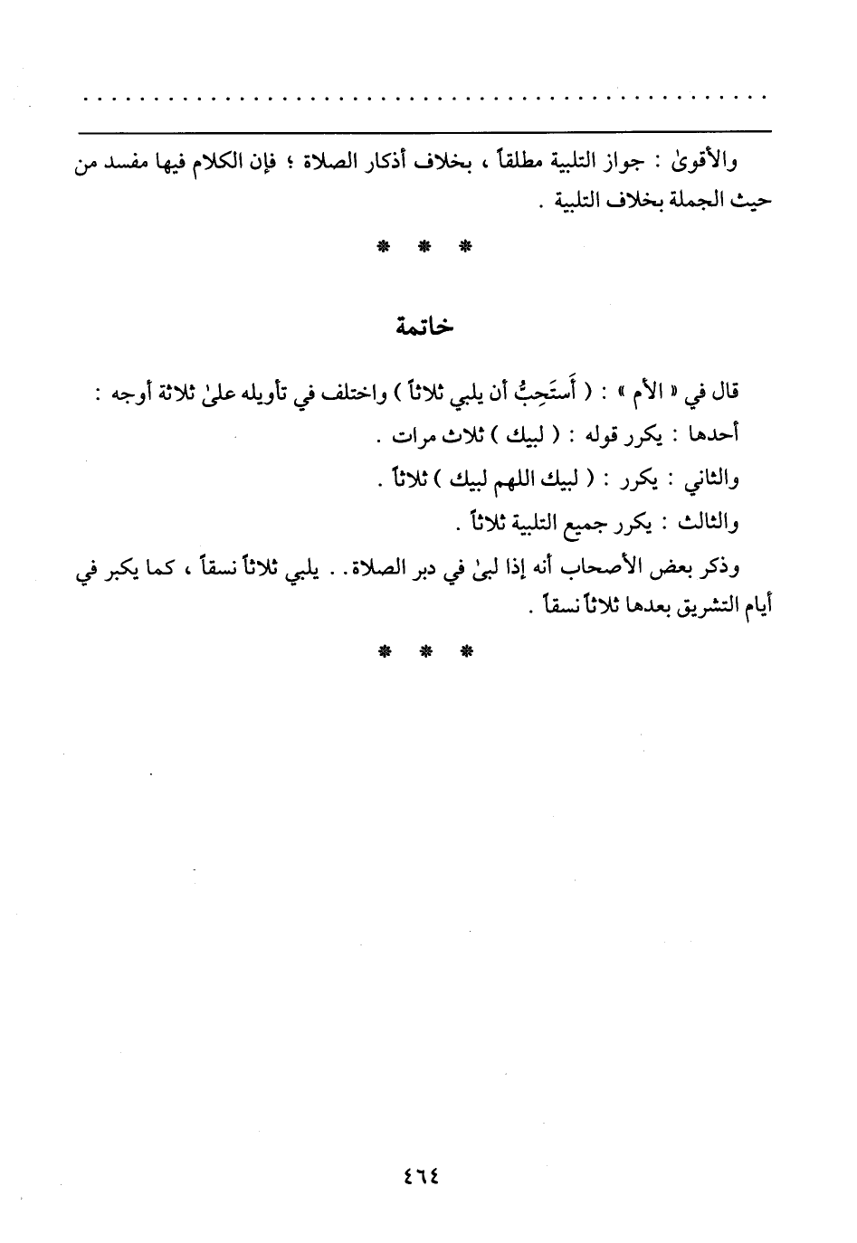 وذكر بعض الأصحاب أنه إذا لبى في دبر الصلاة .. يلبي ثلاثًا نسقًا، كما يكبر في أيام التشريق بعدها ثلاثًا نسقًا.