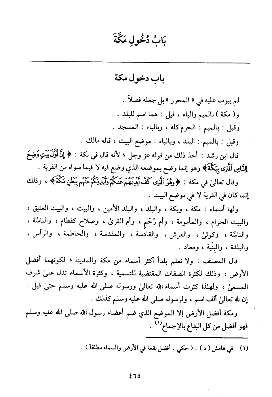 ومكة أفضل الأرض إلا الموضع الذي ضم أعضاء رسول الله صلى الله عليه وسلم فهو أفضل من كل البقاع بالإجماع ..