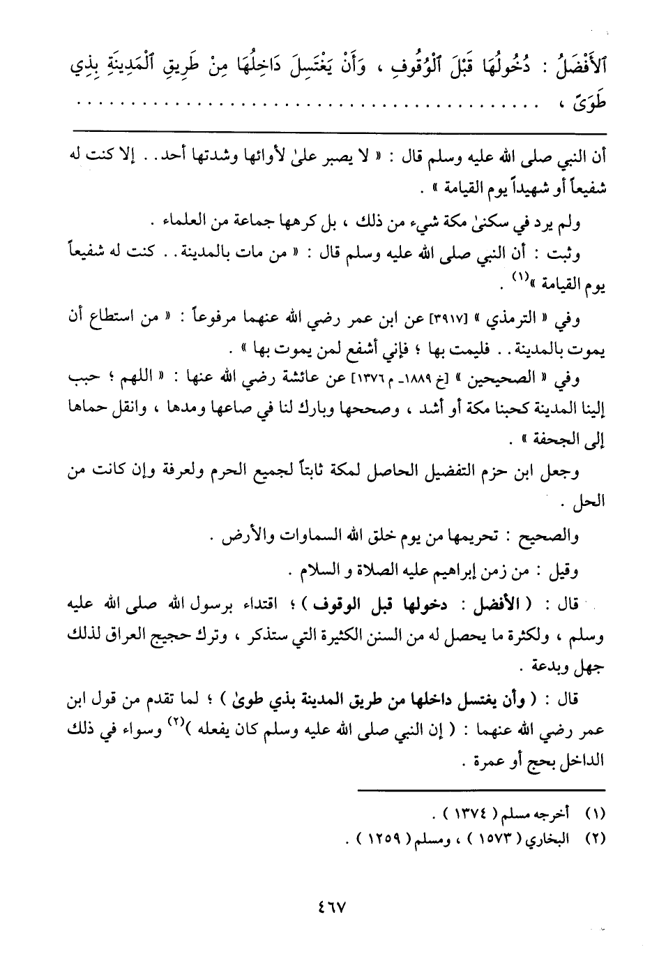 الأَفْضَلُ: دُخُولُهَا قَبْلَ الْوُقُوفِ، وَاَنْ يَغْتَسِلَ دَاخِلُهَا مِنْ طَرِيقِ الْمَدِينَةِ بِذِي طَوَىّ،